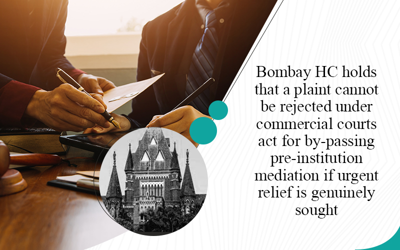 Bombay HC holds that a plaint cannot be rejected under commercial courts act for by-passing pre-institution mediation if urgent relief is genuinely sought