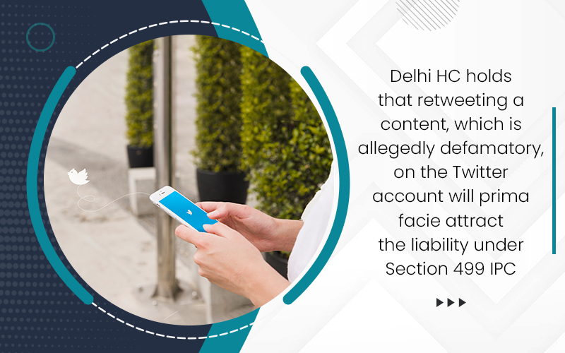 Delhi HC holds that retweeting a content, which is allegedly defamatory, on the Twitter account will prima facie attract the liability under Section 499 IPC