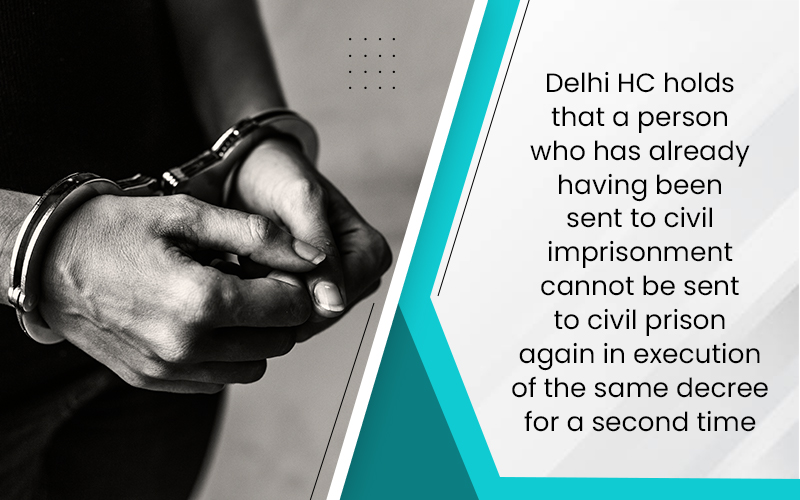 Delhi HC holds that a person who has already having been sent to civil imprisonment cannot be sent to civil prison again in execution of the same decree for a second time