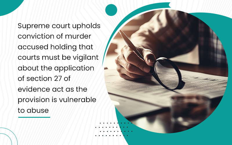 Supreme court upholds conviction of murder accused holding that courts must be vigilant about the application of section 27 of evidence act as the provision is vulnerable to abuse