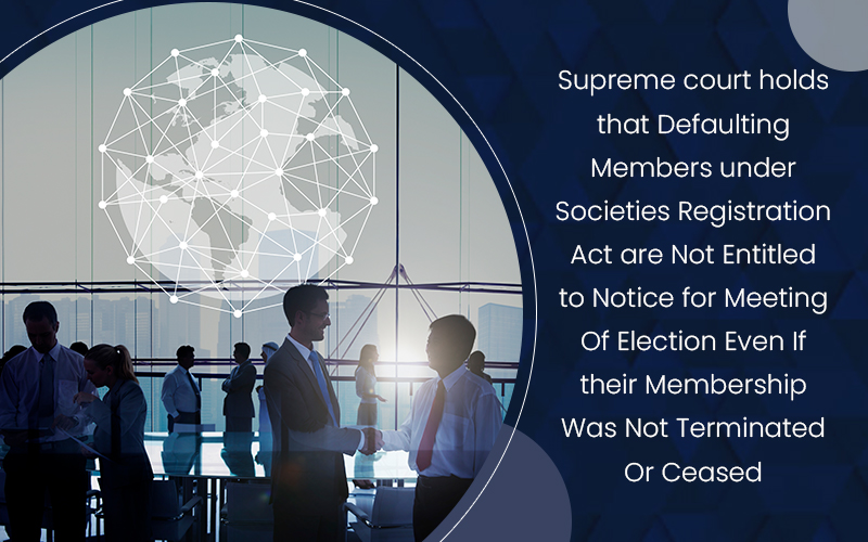 Supreme court holds that Defaulting Members under Societies Registration Act are Not Entitled to Notice for Meeting Of Election Even If Their Membership Was Not Terminated Or Ceased