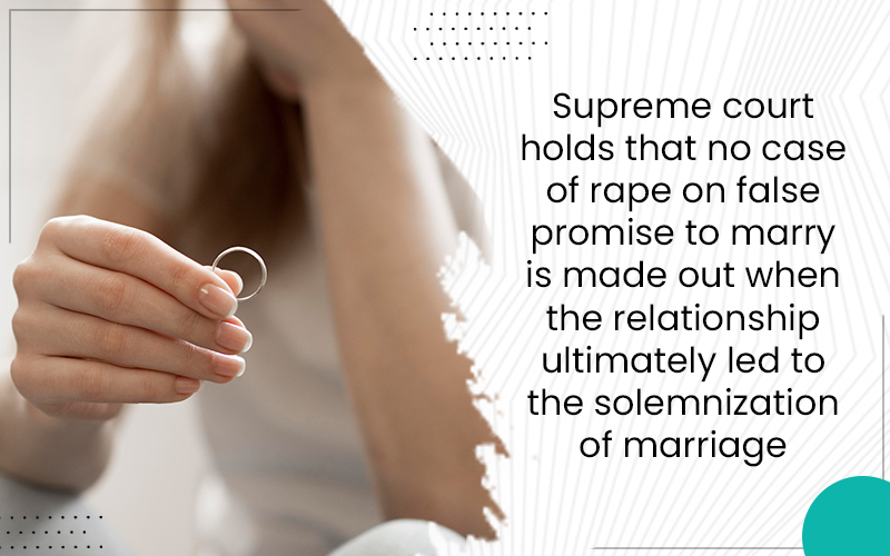 Supreme court holds that no case of rape on false promise to marry is made out when the relationship ultimately led to the solemnization of marriage