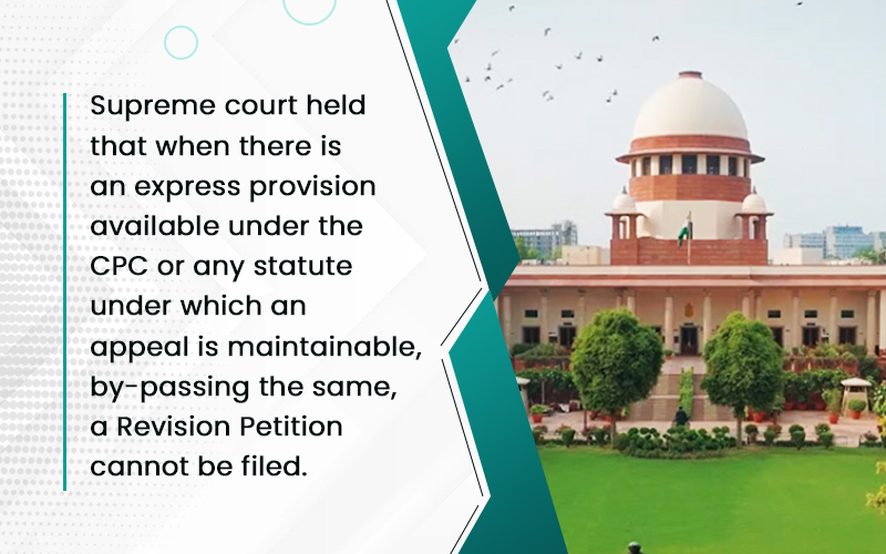 Supreme court held that when there is an express provision available under the CPC or any statute under which an appeal is maintainable, by-passing the same, a Revision Petition cannot be filed.