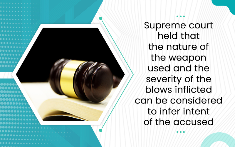 Supreme court held that the nature of the weapon used and the severity of the blows inflicted can be considered to infer intent of the accused