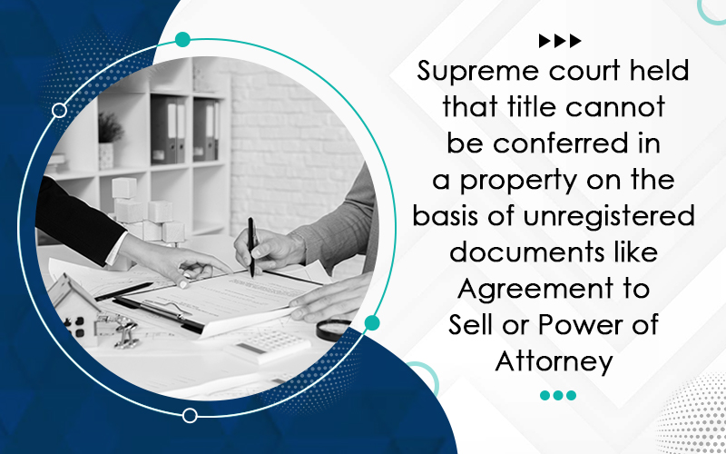Supreme court held that title cannot be conferred in a property on the basis of unregistered documents like Agreement to Sell or Power of Attorney