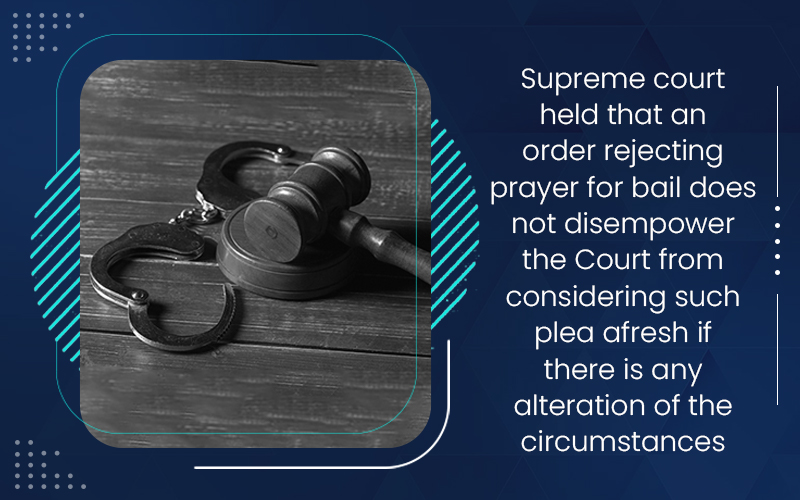 Supreme court held that an order rejecting prayer for bail does not disempower the Court from considering such plea afresh if there is any alteration of the circumstances