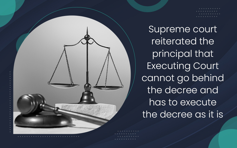 Supreme court reiterated the principal that Executing Court cannot go behind the decree and has to execute the decree as it is