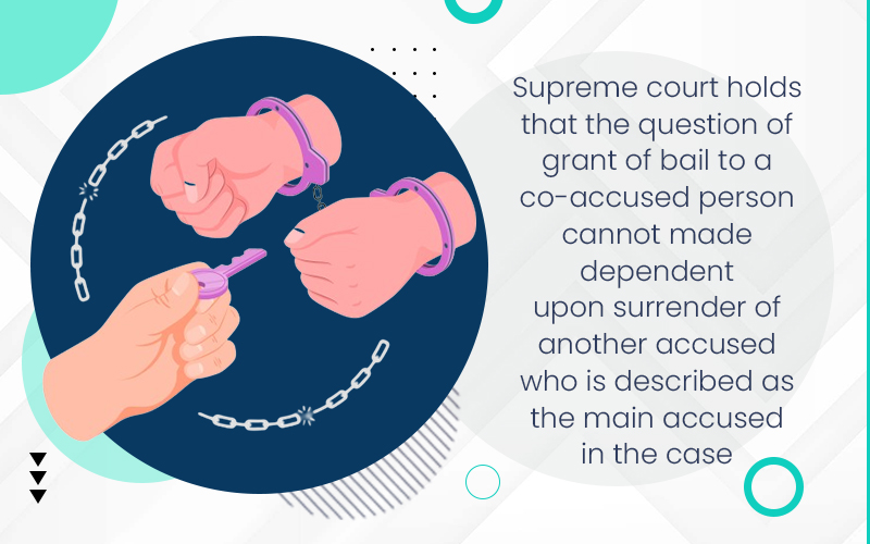 Supreme court holds that the question of grant of bail to a co-accused person cannot made dependent upon surrender of another accused who is described as the main accused in the case